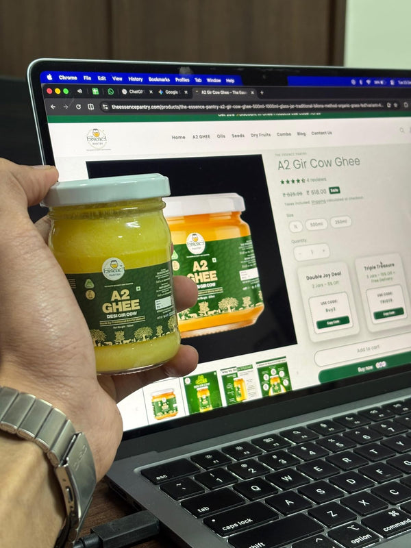 You can buy A2 Cow & Buffalo Ghee, cold-pressed oils (groundnut, sesame, coconut), seeds, dry fruits, and more premium pantry staples.Â