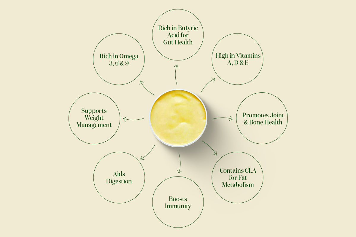 • 🥄 Thicker, richer, and more nutrient-dense than cow ghee