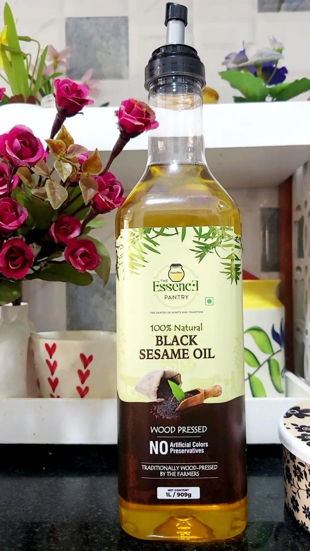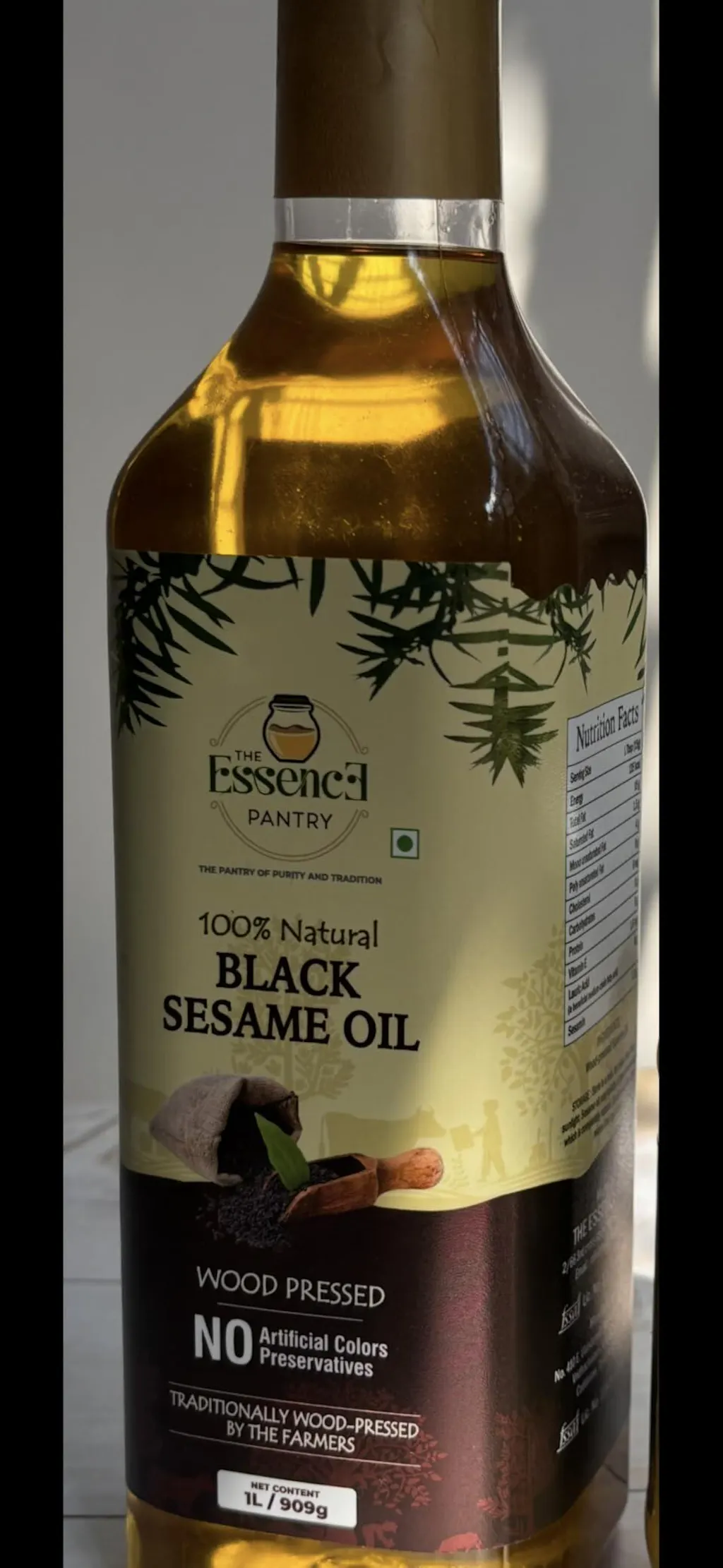 - Cold-pressed from handpicked sesame seeds